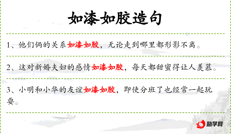 - “如漆如胶”源自**传统文化中的成语“如胶似漆”,常用于形容夫妻或伙伴之间关系非常紧密。