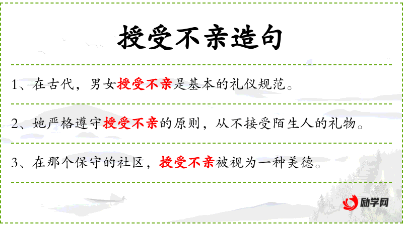 - 授受不亲:指在给予和接受之间保持一定的距离或界限。