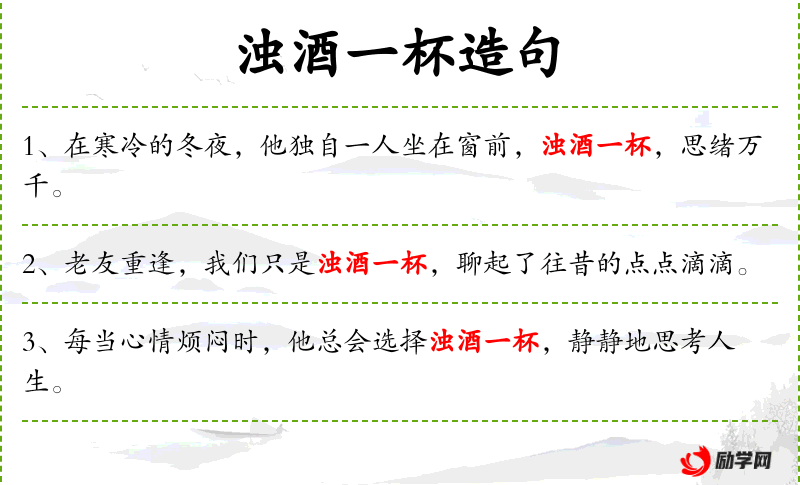 1. 【浊酒一杯】 - 浊:浑浊。指酒质差而且有限,聊以自娱或排遣
