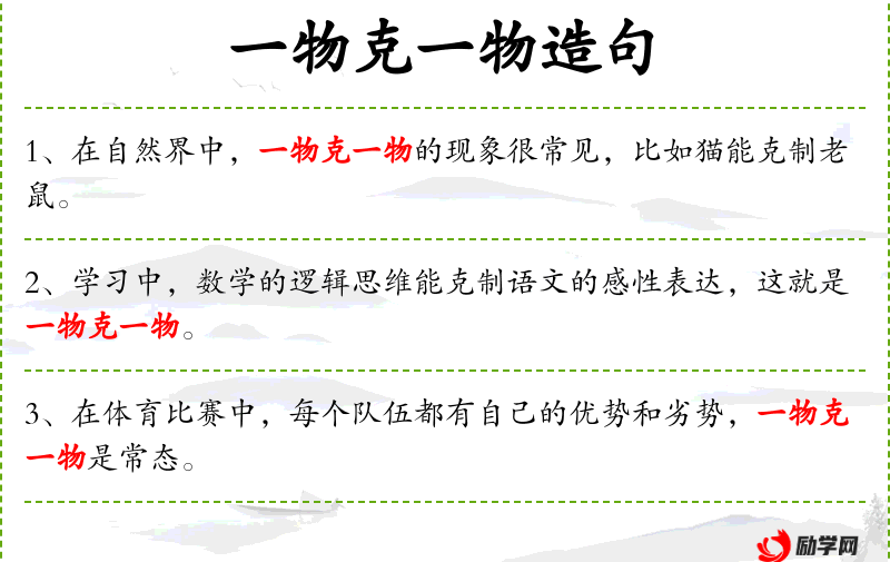 1. 【一物克一物】 指有一种事物,就会有另一种事物来克制它。