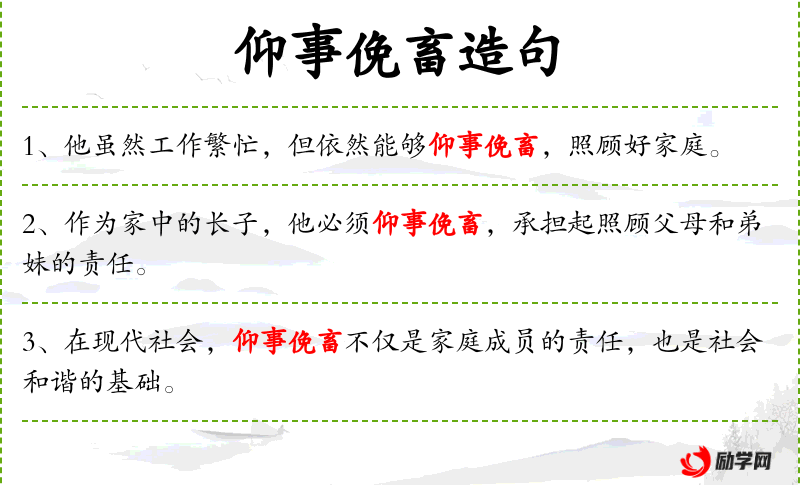 - 可以尝试用不同的句式表达相同的意思,例如:“对个人而言,仰事俛畜是必须遵守的规则,对社会成员来说,这也是一种期望。”
