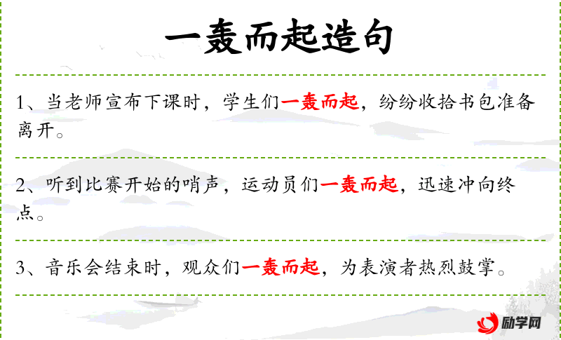 - 一轰而起:形容人们突然、迅速地行动起来。