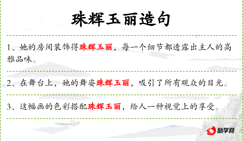 5. 【珠辉玉丽】 - 珠生辉,玉瑰丽。比喻佳丽的肌肤之美。