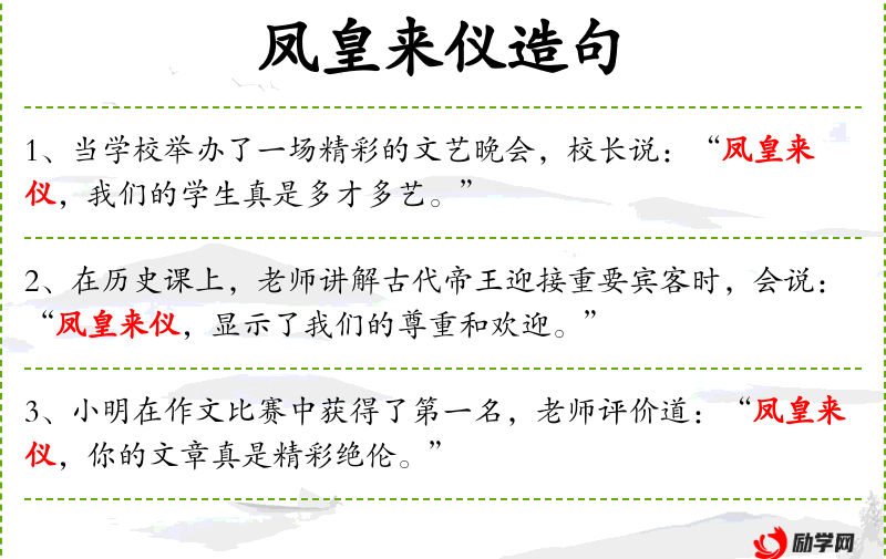 - 成语:“凤皇来仪”源自**传统文化,凤凰是吉祥、高贵的象征。