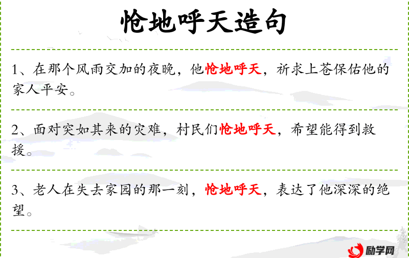 - 呼天:成语,表示极度悲伤或绝望时向天呼喊。