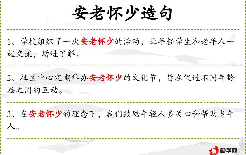 - 安老怀少:指关心老年人和年轻人的福祉,强调社会对不同年龄群体的关怀。