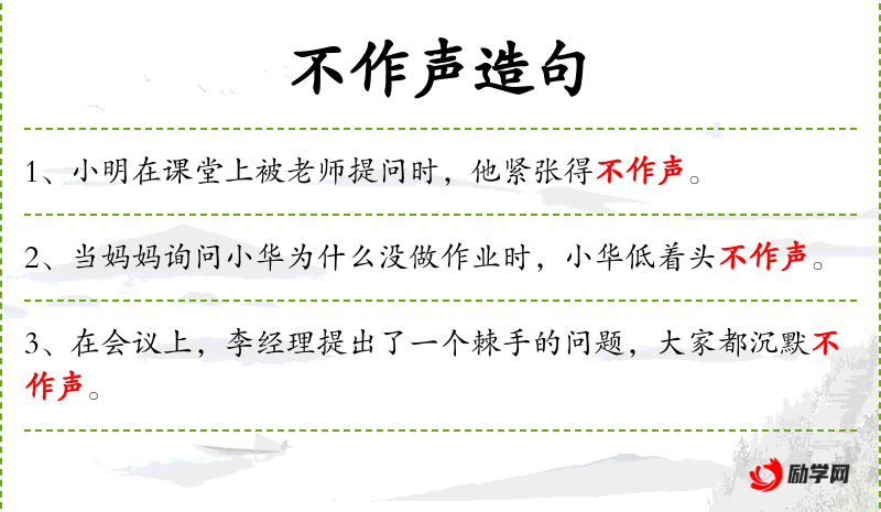 1. 【不作声】 - 不说话。