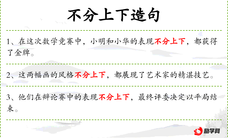 1. 【不分上下】 - 不管上级和下级或指分不出高低胜负。