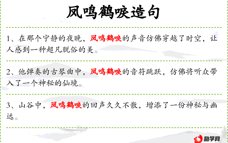 - 变式表达:凤鸣鹤唳,在那个古老的传说里,被视为吉祥的象征,预示着未来的美好。