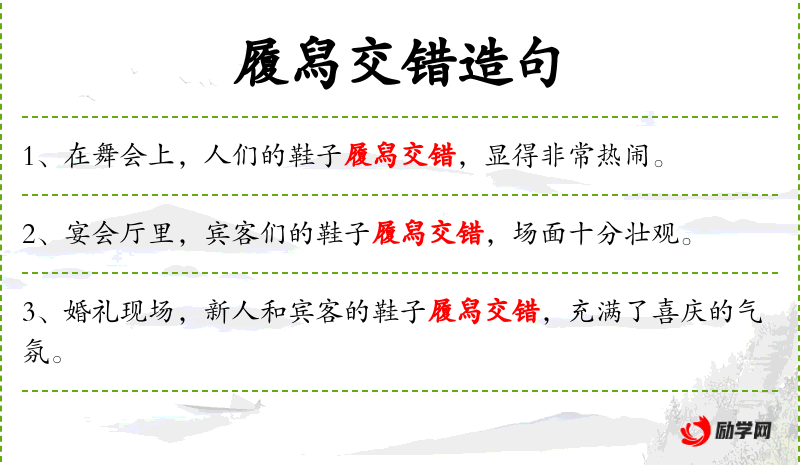 1. 【履舄交错】 履舄:泛指鞋子。鞋子杂乱地放在一起。形容宾客很多。