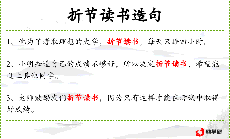 - 折节读书:成语,表示刻苦学*,努力赶上。