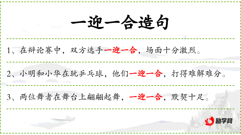 - 成语、典故:无特定成语或典故,但“一迎一合”可以联想到成语“你来我往”。