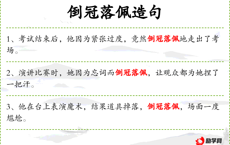 “倒冠落佩”这个成语源自古代,形容官员失势或场面混乱。在现代语境中,它被用来形容任何尴尬或混乱的场面。