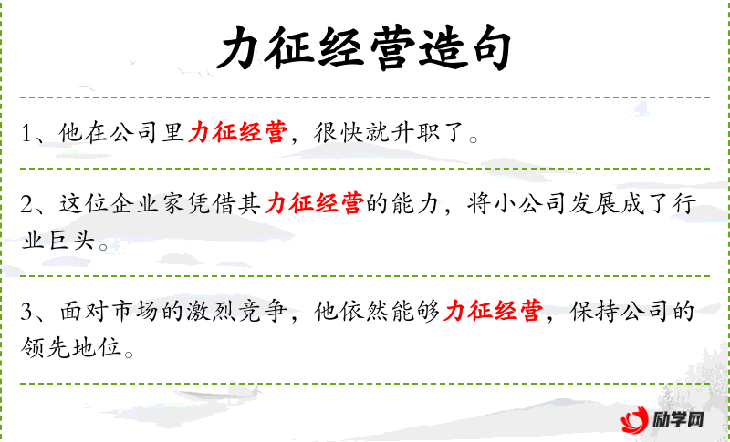 3. 【力征经营】 力征:用武力相争夺;经营:筹划营谋。指用武力征伐来平治天下。