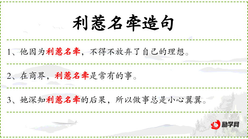 - 利惹名牵:指因为追求利益和名声而导致的牵连和困扰。