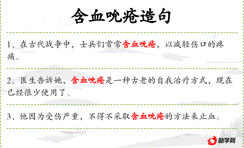 句子:“在古代战争中,士兵们常常含血吮疮,以减轻伤口的疼痛。”