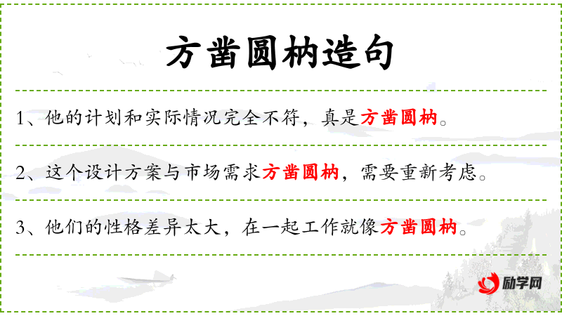 - 方凿圆枘:成语,比喻格格不入,不相适应。