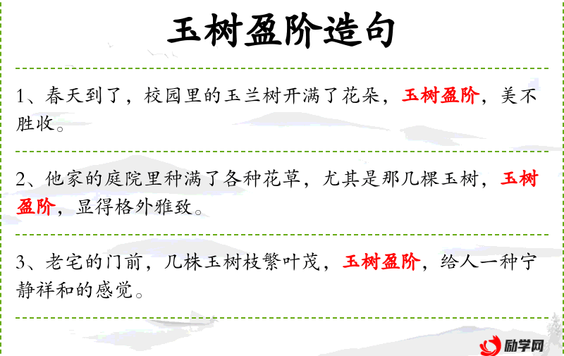 1. 【玉树盈阶】 - 玉树:用玉做的树。比喻有出息的子弟。