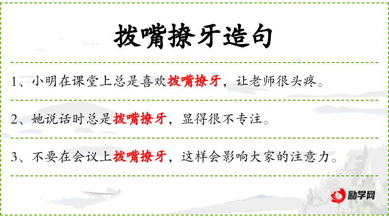 句子中“拨嘴撩牙”可能源自**文化中对学生课堂行为的描述,强调了学生的不规矩行为。