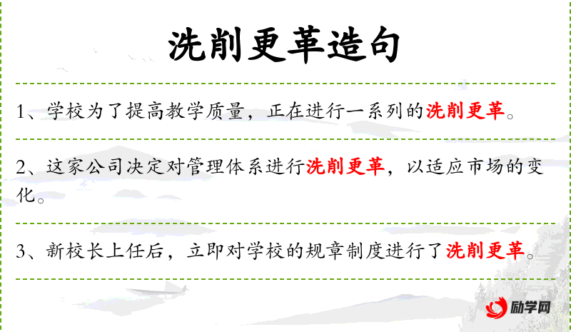 2. 【洗削更革】 - 清洗、削平、更改、变革。形容大刀阔斧地进行改革。
