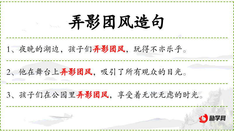 - 定语:弄影团风的