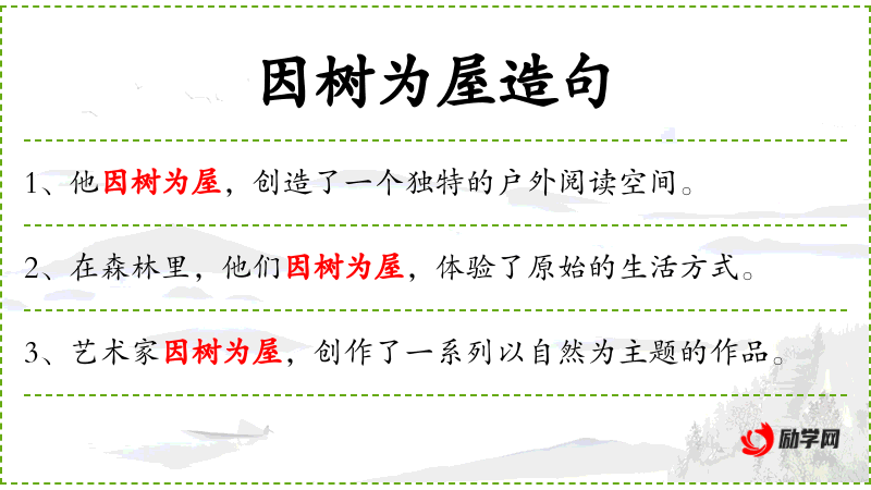 - 因树为屋:利用树木作为住所,可能指搭建简易的树屋或利用自然环境中的树木作为遮蔽。