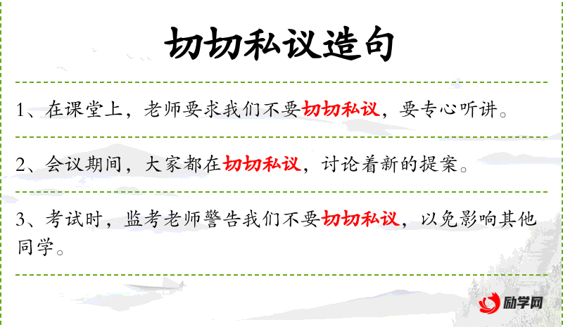 3. 【切切私议】 切:通“窃”;切切:暗中,私下。指私下小声说话。