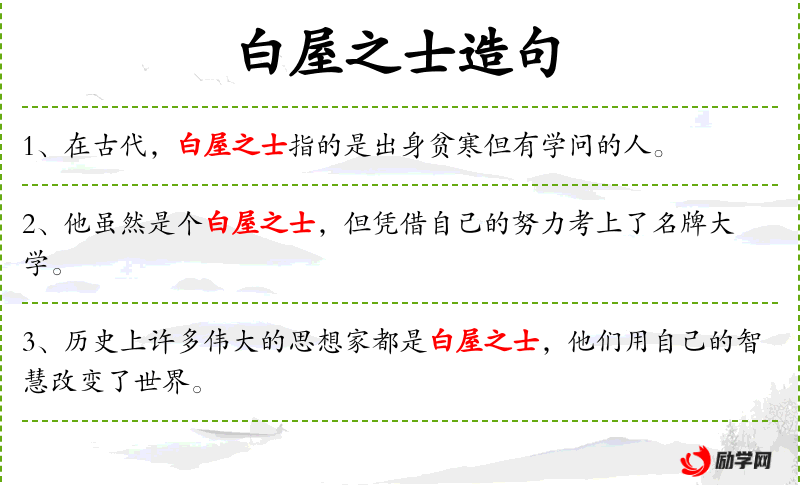 2. 【白屋之士】 - 指贫寒的士人。