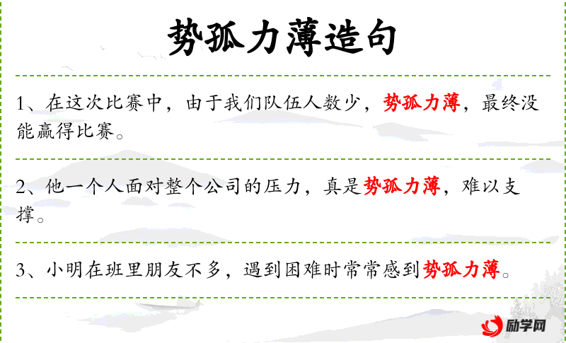 - 势孤力:成语,形容力量单,孤立无援