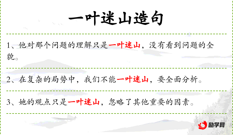 “一叶迷山”这个成语源自**传统文化,比喻因小失大,只看到局部而忽略了整体。这句话体现了中华文化中强调的“远见卓识”和“大局观”。