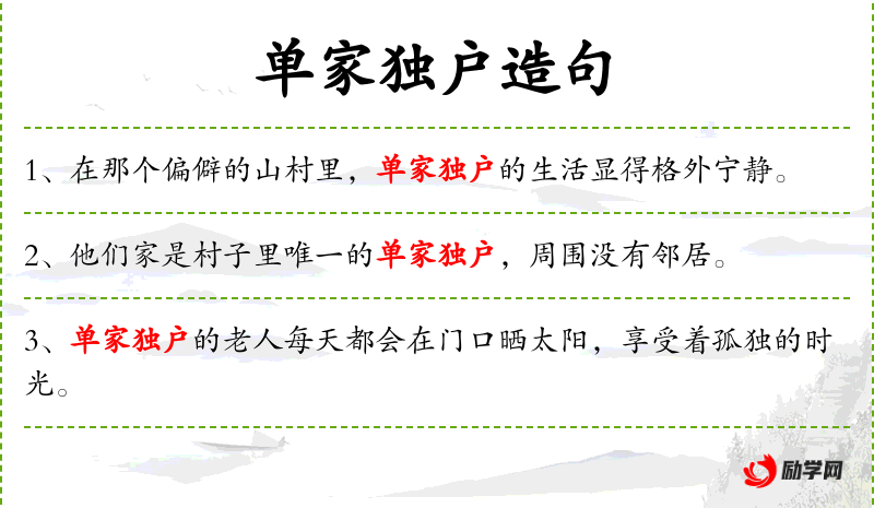 句子:“在那个偏僻的山村里,单家独户的生活显得格外宁静。”