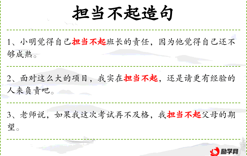 - 担当不起:动词短语,表示无法承担或完成某项任务。