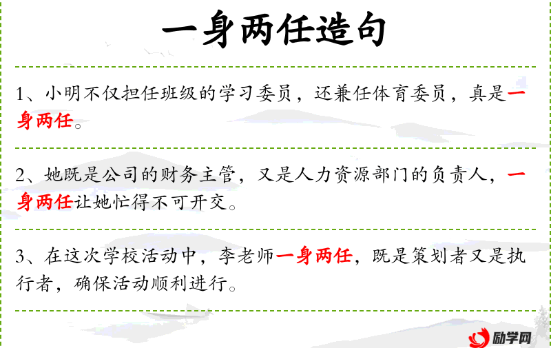 - 一身两任:指一个人同时担任两个职务。