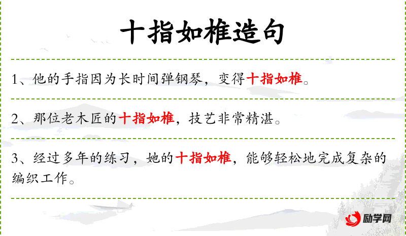 1. 【十指如椎】 形容手指粗笨不纤巧。