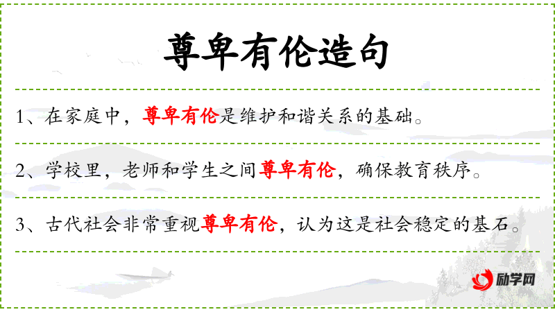 - 尊卑有伦:指在家庭或社会中,不同成员之间应遵循的等级和秩序。