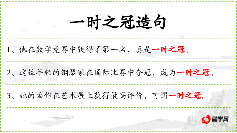 一时之冠造句列表