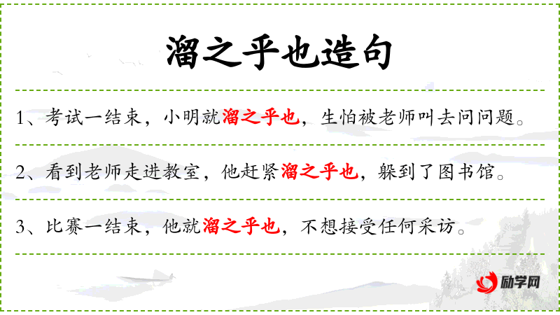 5. 【溜之乎也】 - 溜走(讽刺的、风趣的说法)。