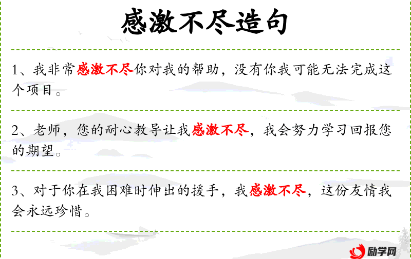 - 感激不尽:表示非常感谢,感激的程度很深。