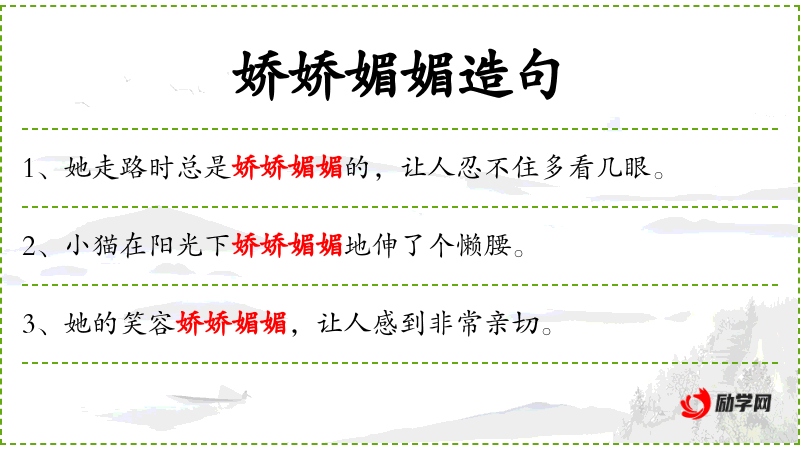 - 定语:娇娇媚媚(修饰“舞姿”)