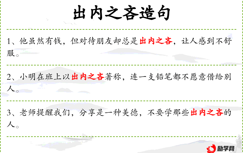 - “出内之吝”是一个成语,源自《左传·僖公二十五年》,原指国家财政的吝啬,后泛指个人或集体的吝啬。