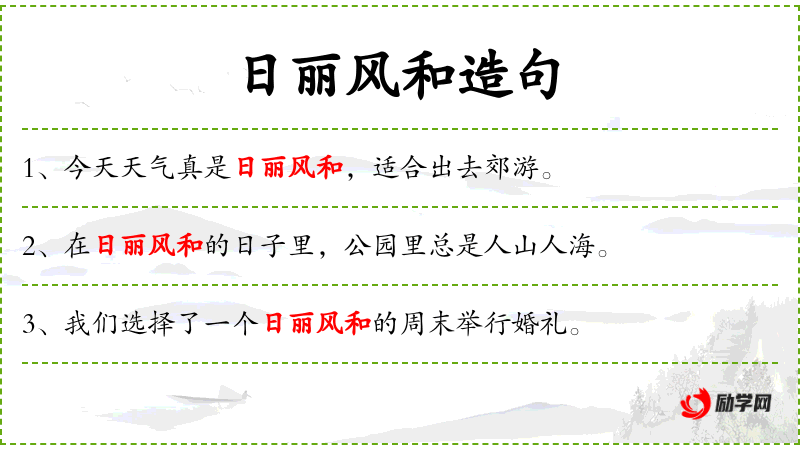 - 日丽风和:在**文化中,晴朗的天气常常被认为是好兆头,适合外出活动。