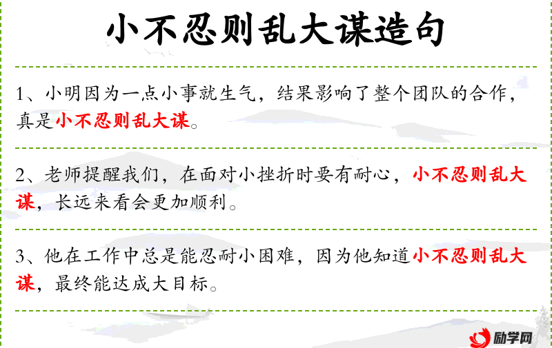 - 小不忍则乱大谋:A small不忍 can disrupt a grand plan.