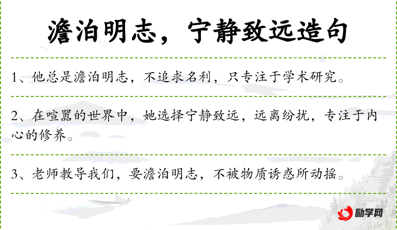 老师教导我们,要澹泊明志,不被物质诱惑所动摇。