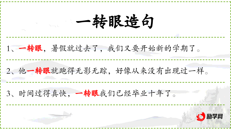 1. 【一转眼】 - 比喻极短的时间。