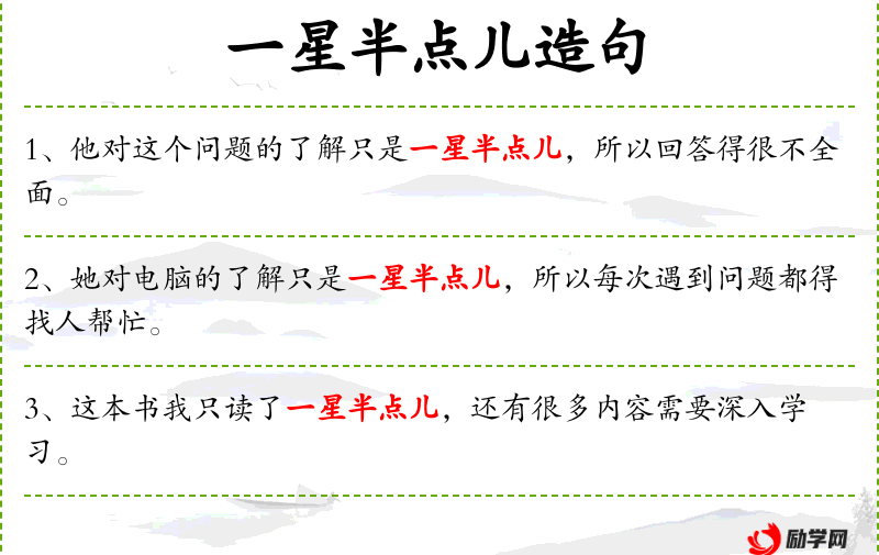 1. 【一星半点儿】 形容极少:为大伙儿做过~的事情,不值得一提。