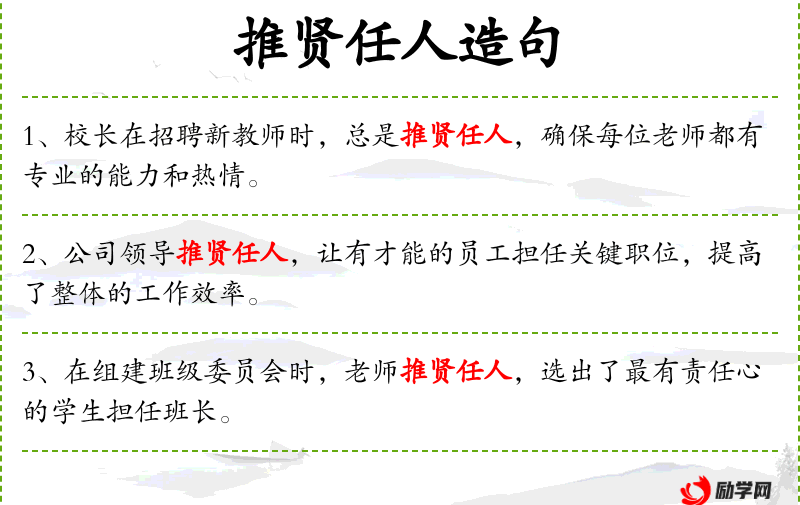 - 相关成语:任人唯贤、举贤任能。