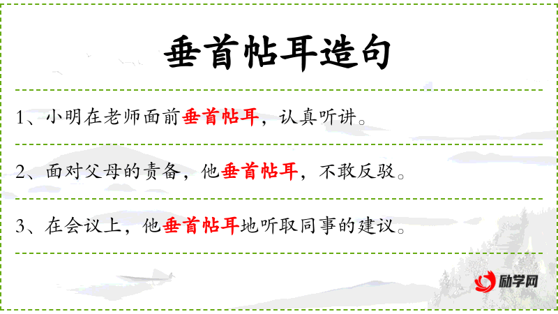 - “垂首帖耳”这个成语体现了**传统文化中对权威的尊重和服从。