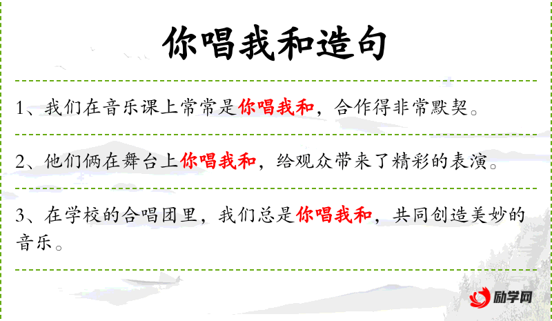 - 你唱我和:一种互动的歌唱方式,通常表示两人配合默契。