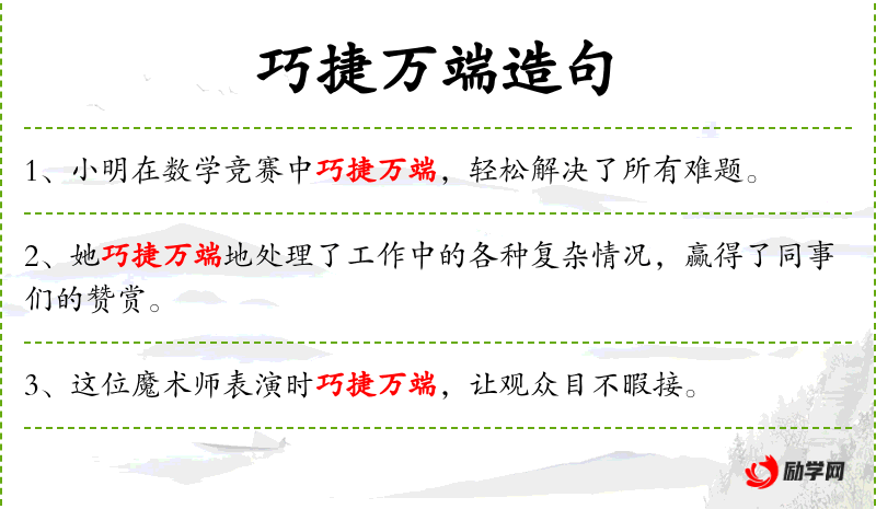 - 巧捷万端:形容思维敏捷,方法多样,富有创造性。