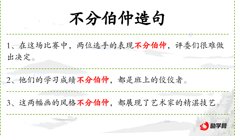 1. 【不分伯仲】 - 分不出第一第二。